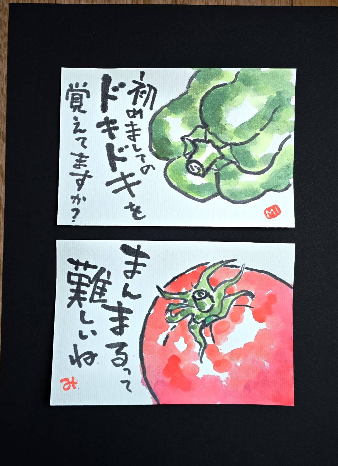 初めて絵手紙を描くときのモデルは野菜(特にピーマン)が多いですね。