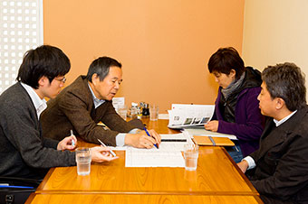 最初の打ち合わせでは、まずお話しをじっくりと伺います。また、ナルシマの家づくりの考えもお伝えいたします。ですから、とても時間がかかります。もちろん、一度で話しきれない場合もありますので、何度でも打ち合わせを繰り返し、お話を伺います。