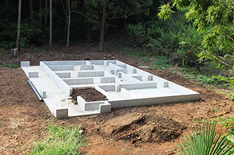 地盤調査に基づき、必要な場合はくい打ちなどの補強を行い、基礎の着工となります。永く安全な暮らしのために、ナルシマの基礎は頑強なつくりとなっております。鉄筋の数などぜひ現場でお確かめください。ナルシマでは施工の途中で何度かお客様立会いの検査を行っており、基礎の完了確認はその最初になります。