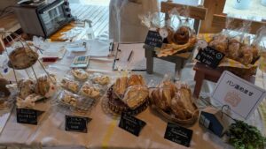 米粉パンの販売とともに、自宅でも楽しめるパン作り教室のご案内も。日々の暮らしに「つくる楽しさ」を持ち帰っていただける出店でした。
