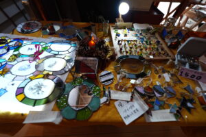 冬のやわらかな光を受け、ステンドグラスのアイテムが静かに輝いていました。急な出店依頼にもかかわらず、MUNIの空間に美しい彩りを添えてくださいました。